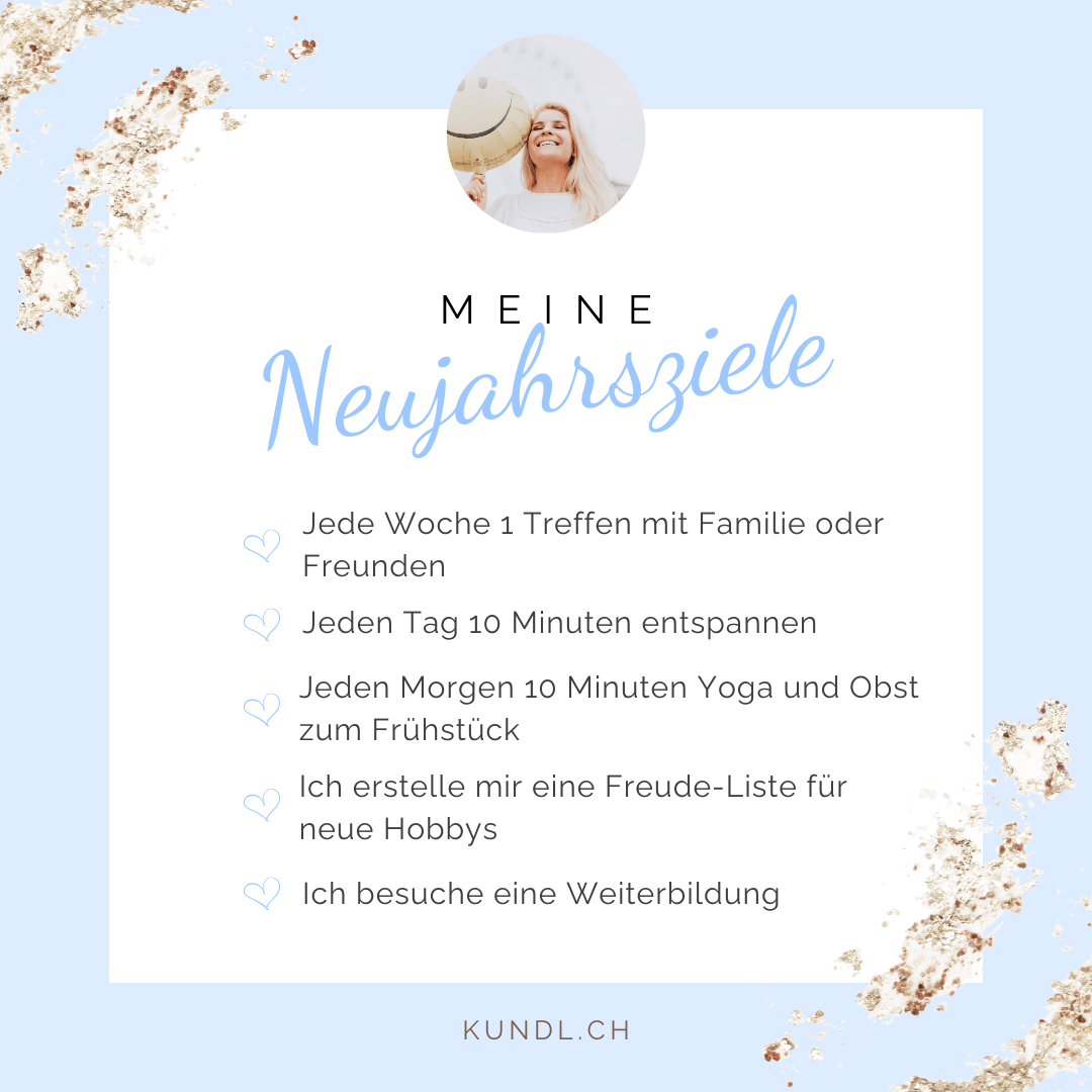 Hier noch ein Beispiel, wie Du Deine Vorsätze in konkrete Ziele wandeln kannst. Passe sie auf Deine Bedürfnisse und Wünsche an.